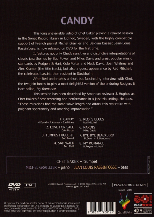 Chet Baker - Candy (DVD) in the group Labels / Gazell at Bengans Skivbutik AB (5664278)