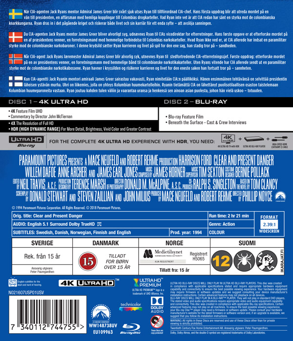 Movie - Clear And Present Danger Uhd in the group Movies / Film UHD-4K / Action at Bengans Skivbutik AB (5661814)