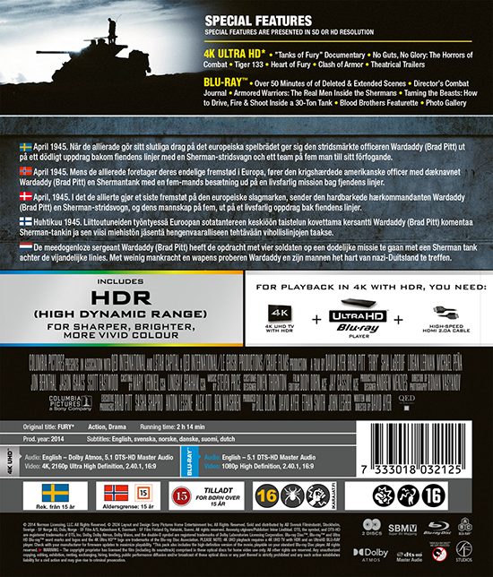 Movie - Fury (4K+Bd) Bnl+Nc in the group Movies / Film UHD-4K / Action at Bengans Skivbutik AB (5661148)
