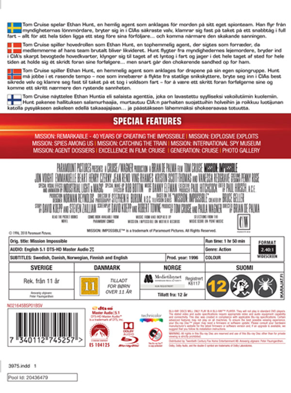 Movie - Mission: Impossible 1 (2018) Bd in the group Movies / Film Blu-ray / Action at Bengans Skivbutik AB (5661825)