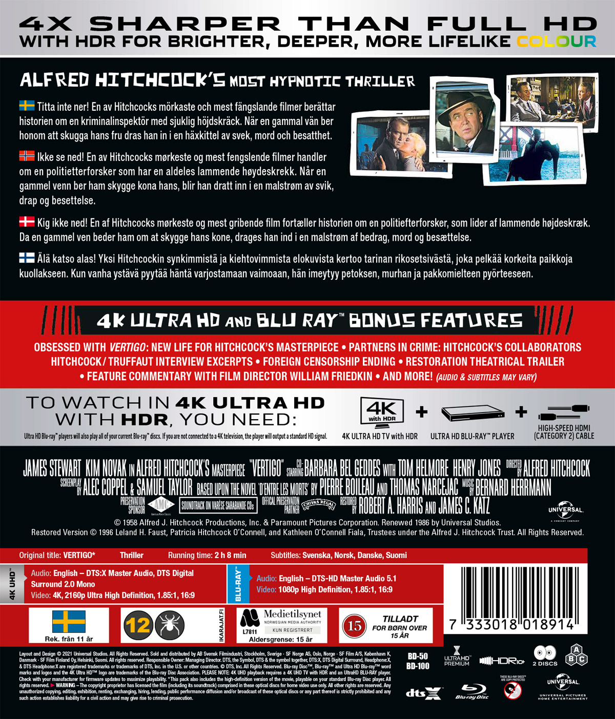 Movie - Vertigo (4K) in the group Movies / Film UHD-4K / Thriller at Bengans Skivbutik AB (5661543)